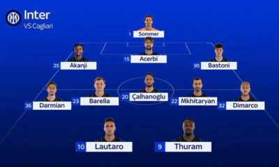 Inter a Cagliari con Sommer tra i pali, Bastoni torna in difesa. Darmian favorito su Dumfries, in attacco di nuovo la coppia Lautaro-Thuram.