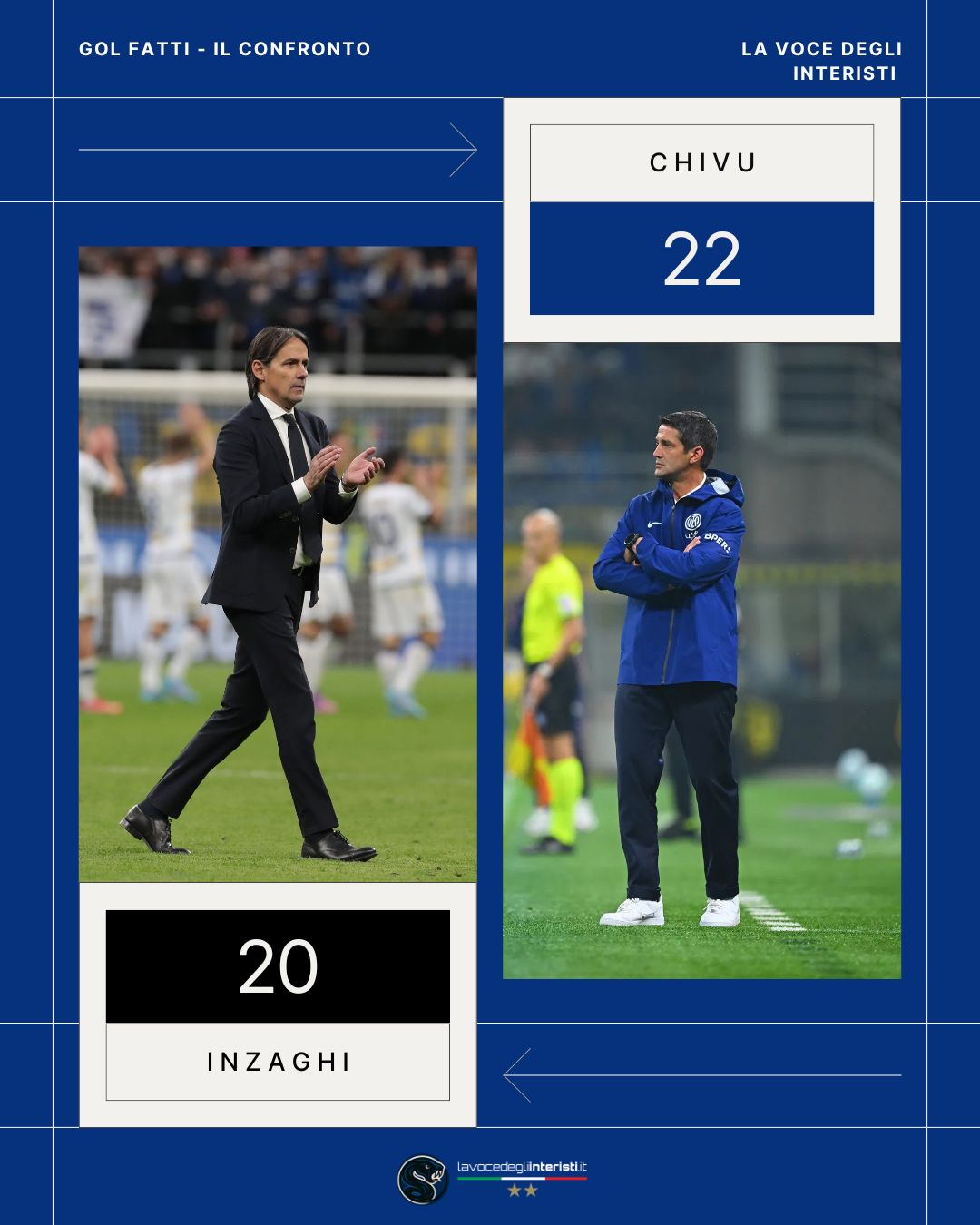 Dunque, 22 a 20 per Chivu. Tutti gli altri allenatori, da quando l’Inter è tornata a frequentare la Champions – dalla stagione ’18-19 -, inseguono. Inzaghi in altre tre stagioni, Conte in due (al massimo 17 gol nel ’20-21) e Luciano Spalletti in una (12 nel ’18-19)”.